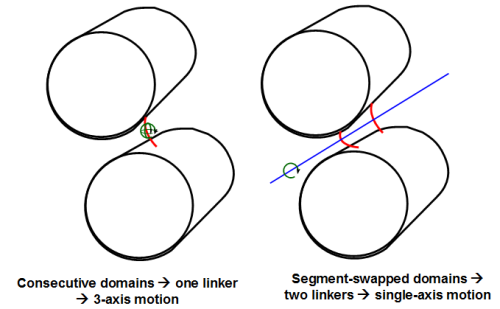 Is there an advantage to having segment-swapped rather than consecutive domains? Because in segment-swapped proteins, two peptide stretches connect the two domains rather than one, we hypothesize that having two connections makes it easier to develop a single-axis hinge-type motion, which has been shown to be functionally important in many proteins: